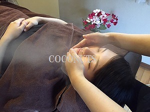 マッサージ後に全身を発汗シートで包み