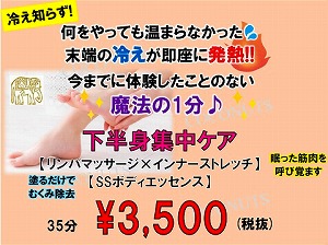 【新規様限定】 下半身集中ケア 35分 ¥3,500