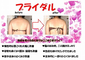 肩こりが酷く姿勢も悪くて常に猫背、アンダーも大きくなっていきバストも日に日に小さくなっていってる気がしたので今回予約しました!すごく親切に聞いてくださり説明しながら施術をして頂いたのですごくわかりやすく普段の生活の中で積み重ねて行きこの状態になったんだなと思い知りました!普段の生活の中で気を付けれるように頑張りたいと思います!1回で効果がで出て満足です!これからの身体のことについても相談するのに通わせていただきます!ありがとうございました!