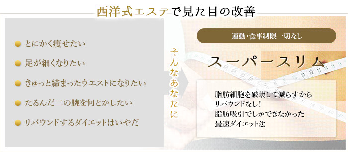 従来のエステは、機械で場しのぎ的に脂肪を燃焼させることだけを目的としていました。その為、体質は変わらないのですぐにリバウンドをしてしまいます。