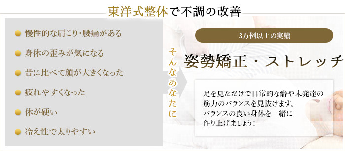 当店の手技は、歪みを矯正し正しい位置に戻すだけで代謝が上がり、痩せやすく悩みの少ない体質へと導きます。リンパマッサージは東洋医学がベースになっており、筋肉の凝りや張りをほぐすことができます。
