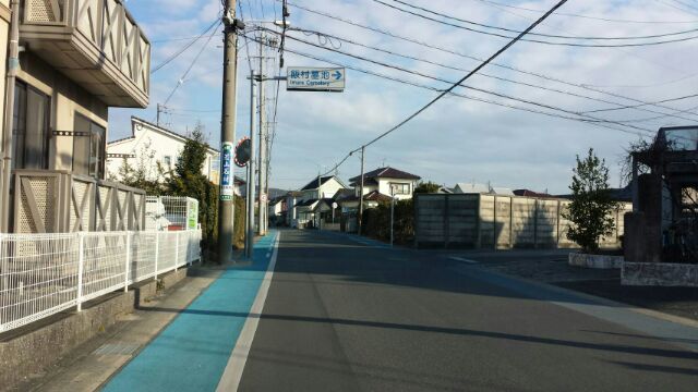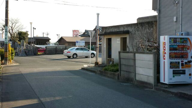 右手自販機を目印に右折 ・飯村墓地駐車場手前を右折(自動販売機が目印)