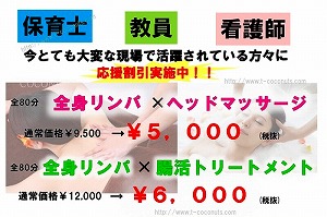 保育士・教員・看護師の方々限定!応援割引き実施中!