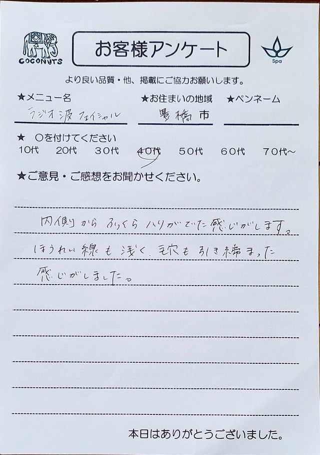 豊橋市 匿名さん 40代【ラジオ波フェイシャル】R2.12.11