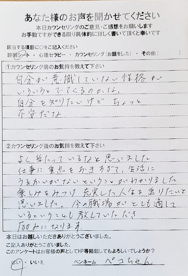 【性格診断シート】50代 女性 R2.12.24 まだ知らない性格がわかる