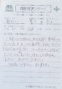 自分に合った施術をえらんでくれるのでまたお願いしたいです。