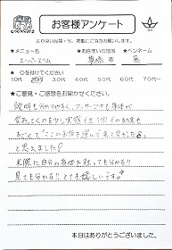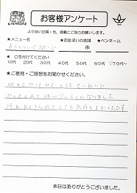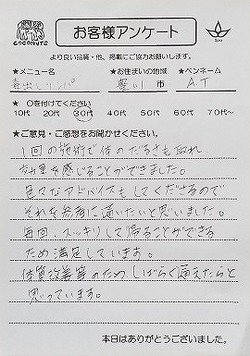 1回の施術でも効果を感じることができたので、これからも継続していきたいと思いました。