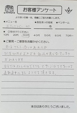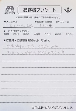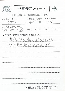 蒲郡市 匿名さん 30代【コリ取り】