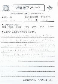 また是非お願いしたいです。ありがとうございました!