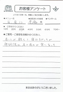 施術後は肩の痛みが楽になった。