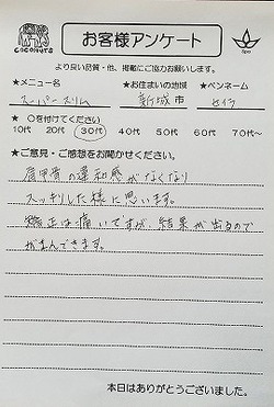 豊橋市 匿名さん 60代【整体+リンパマッサージ】