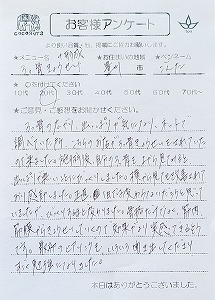施術途中からじわじわ良くなっていくのを感じました。