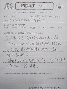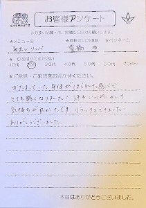 豊橋市 Sさん 40代 【快眠マッサージ】R3.5.22
