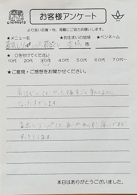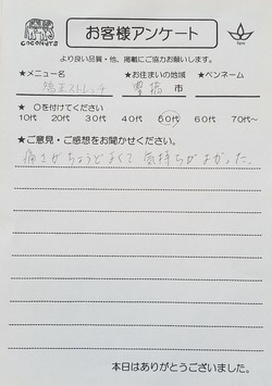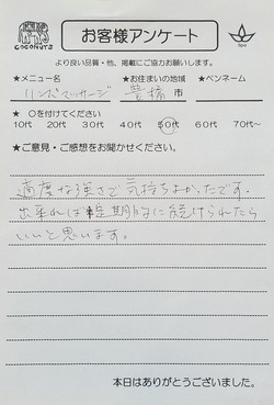 豊橋市 匿名さん 30代 【毒出しリンパ+肩ほぐし】