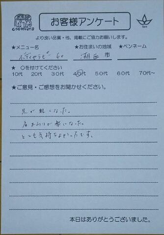 湖西市 匿名さん 40代 【ボディセラピー60分】