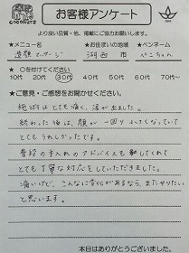 湖西市 ぺこちゃんさん 30代 【造顔マッサージ】