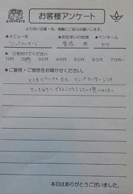 豊橋市 ゆかさん 20代 【リンパマッサージ60分】