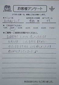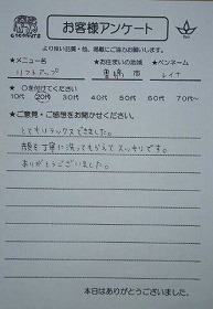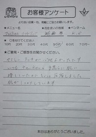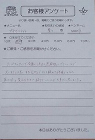 他のサロンではここまで親身に話をしてくれたことも少なかったけれど的確なアドバイスを頂きました。