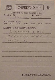 気になる所があると、その部分を中心的にやってくれるなど、 心づかいがとても素テキでした。