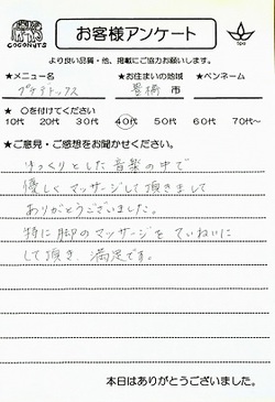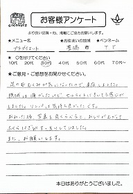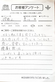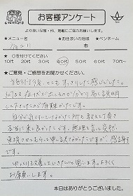 豊橋市 匿名さん 30代【整体(試)+ヘッドマッサージ】R2.6.12